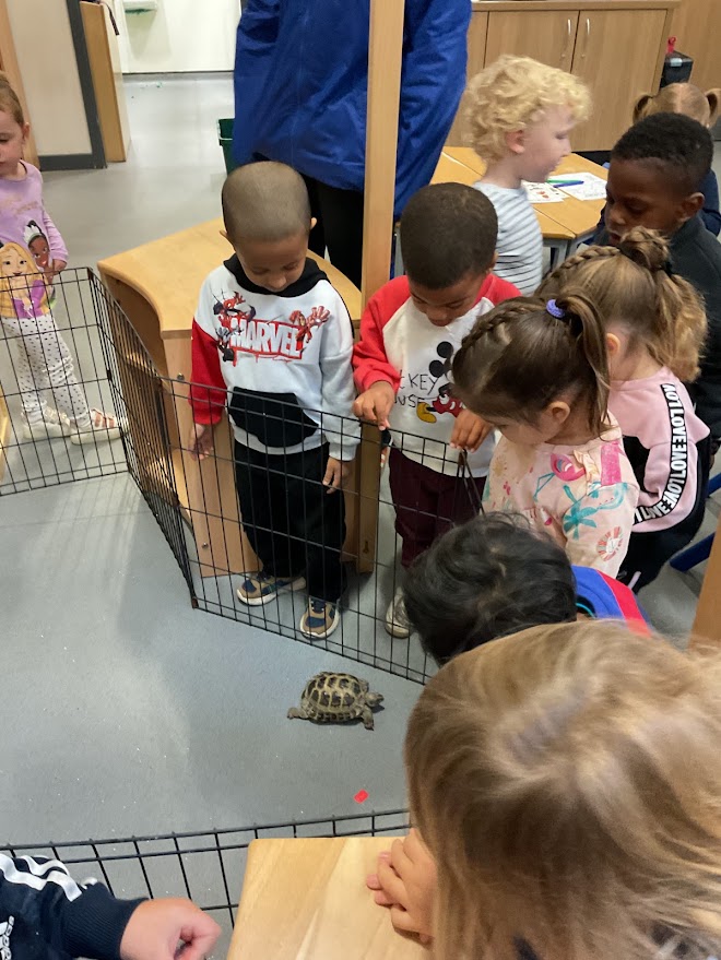 We have been talking about autumn and hibernation. Mrs Hannam brought in her pet tortoise, Dave, before he goes into hibernation for the winter. We made some bread dough and made hedgehog rolls, which was a little messy!