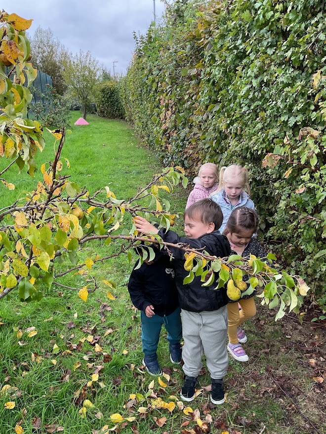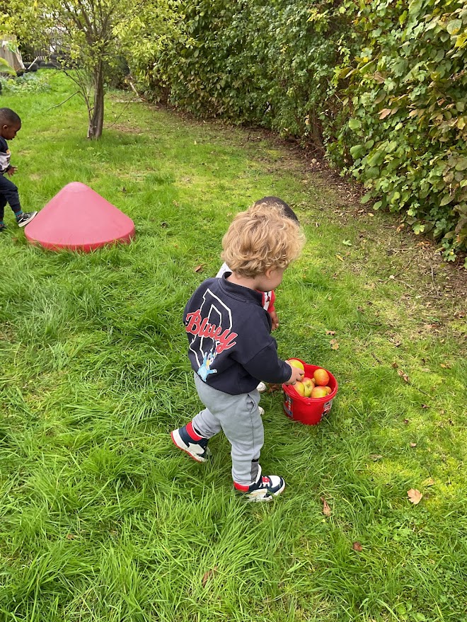 We picked the apples and pears from the tree in the garden, which was lots of fun, and we joined in with the whole school Harvest assembly.