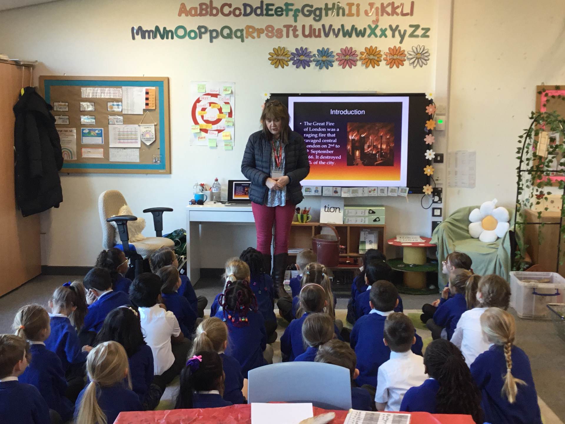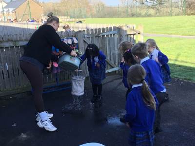 We had a lovely visit on Wednesday 4th March from Somerset Heritage Trust to teach us all about the Great Fire of London. We learnt about how the fire started, and all the important people of the time like Samuel Pepys and Thomas Farriner. We had a chance to try out how they used to put the fires out with a bucket, we tried writing with a quill and we dressed up as bakers, firemen and King Charles.