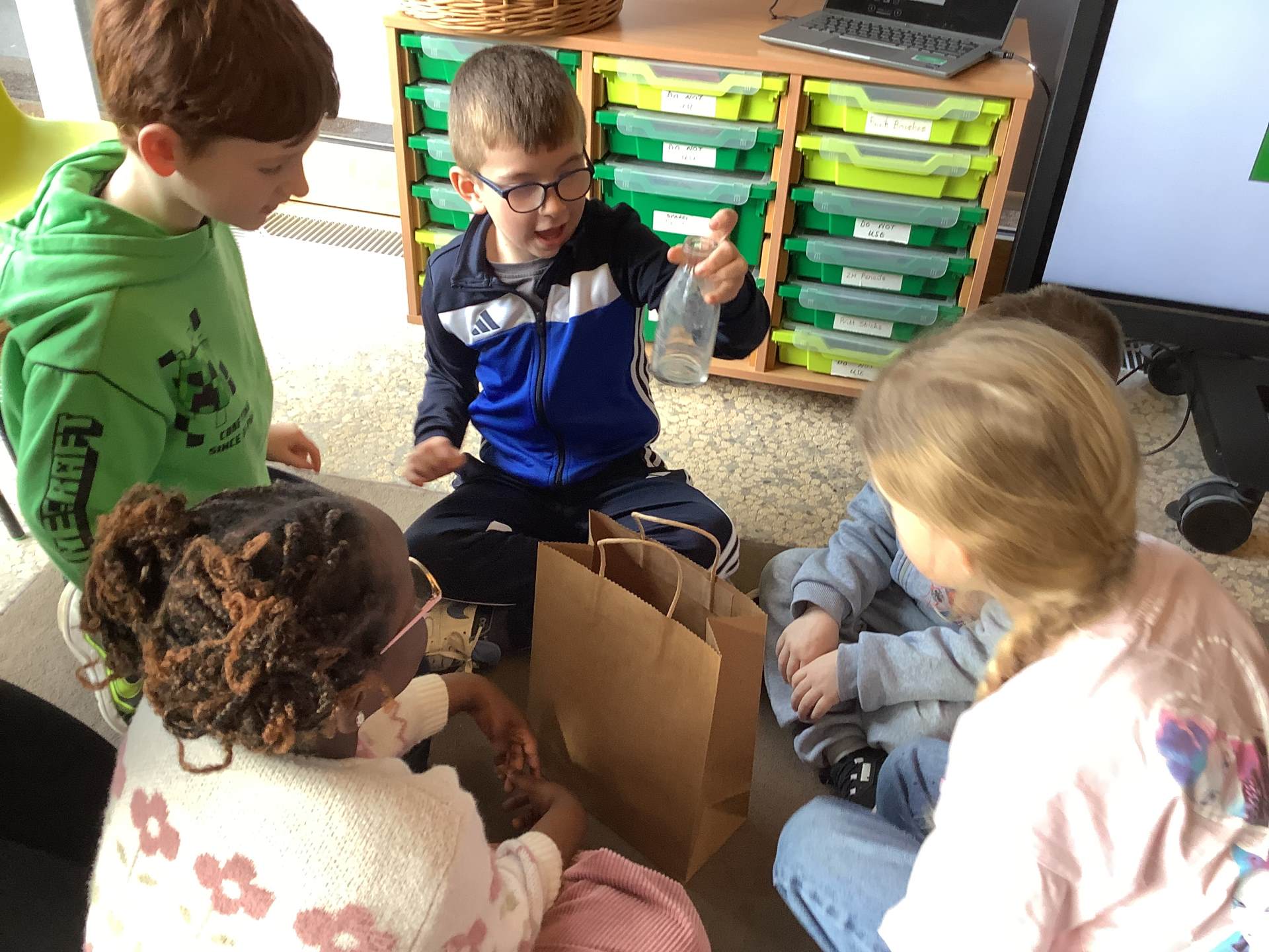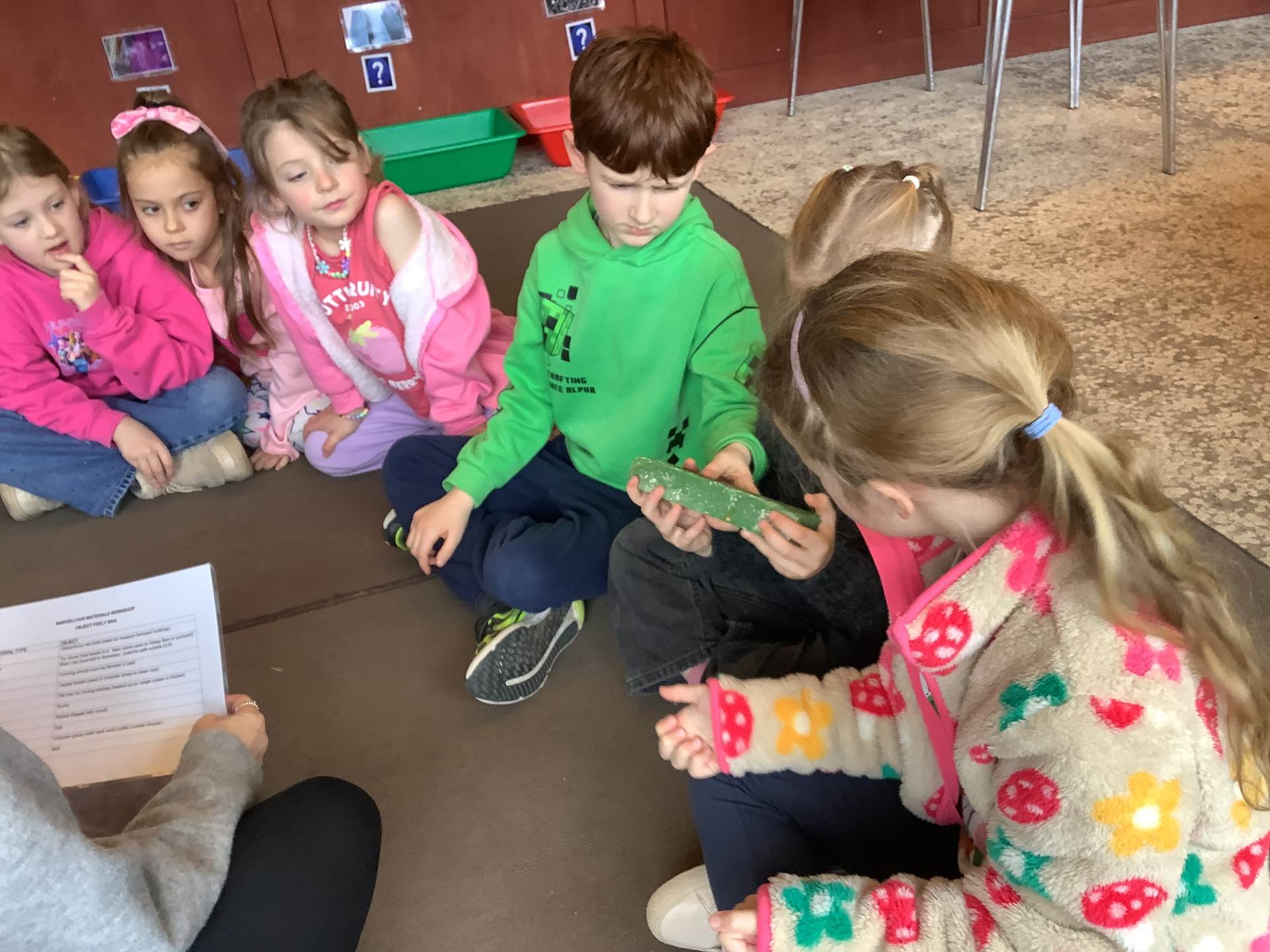 We split into 3 groups. The first group went on a material hunt through the museum, the second group made wool magnets and the third group played a game of ‘Guess the item’. Afterwards we swapped and ensured each child took part in every activity.