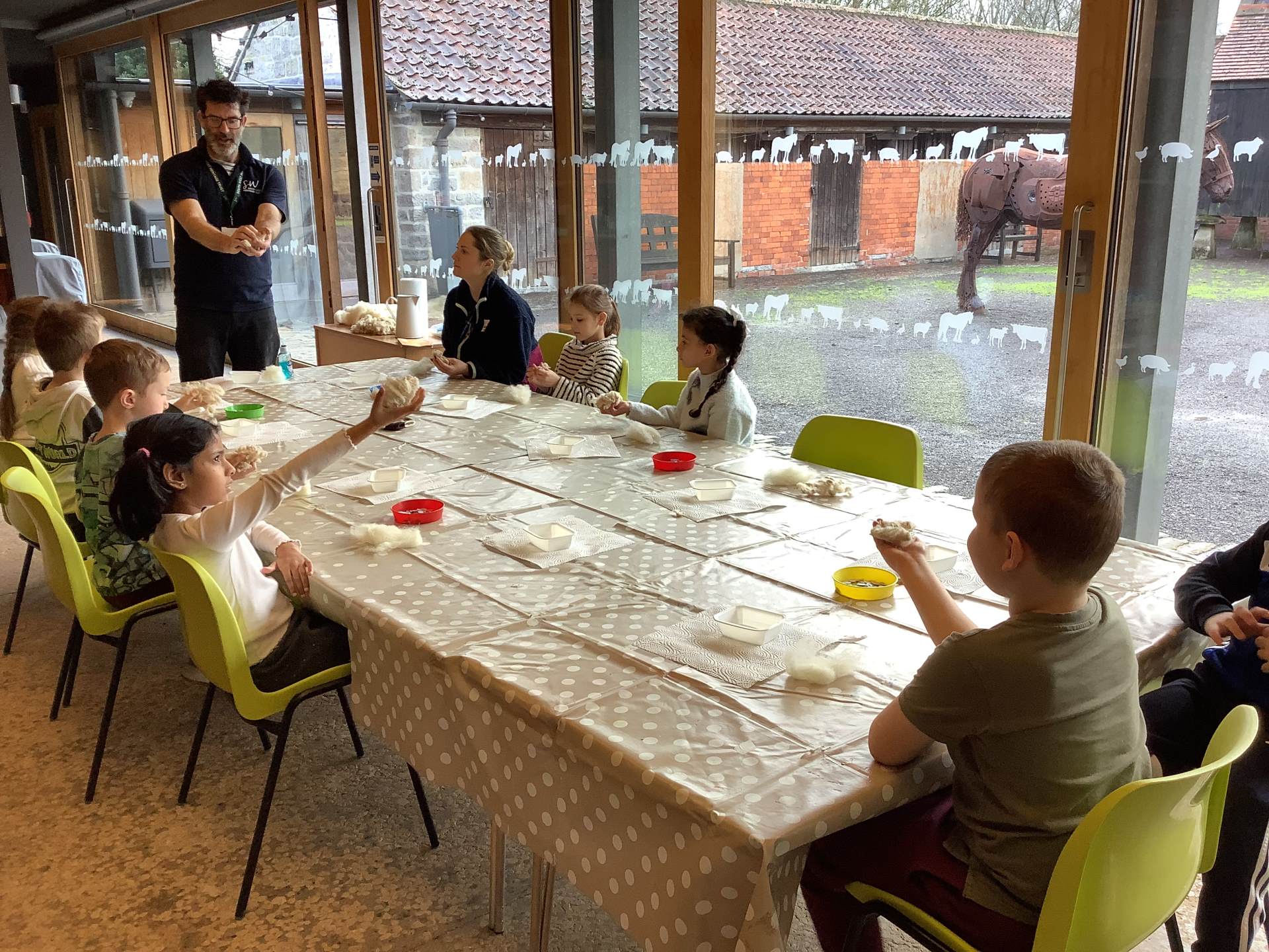 We split into 3 groups. The first group went on a material hunt through the museum, the second group made wool magnets and the third group played a game of ‘Guess the item’. Afterwards we swapped and ensured each child took part in every activity.